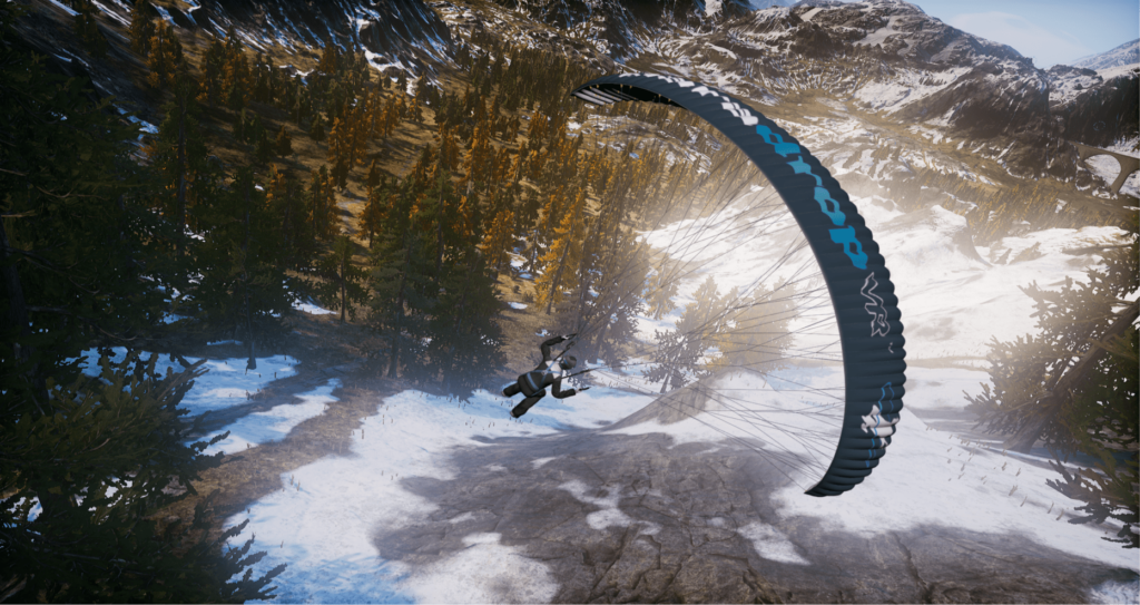 Hold on tight for an immersive paragliding experience, explore the desert, mountains and even outer space while flying through virtual rings on a mission to collect points